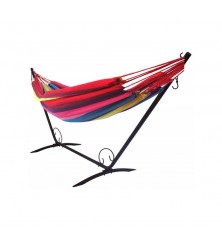 Léger à déplacer, il est parfait pour créer un espace relaxant rapidement et sans effort. Son design élégant et la couleur rouge vive du hamac apportent une touche esthétique, tout en offrant une solution pratique et durable pour vos moments de repos.